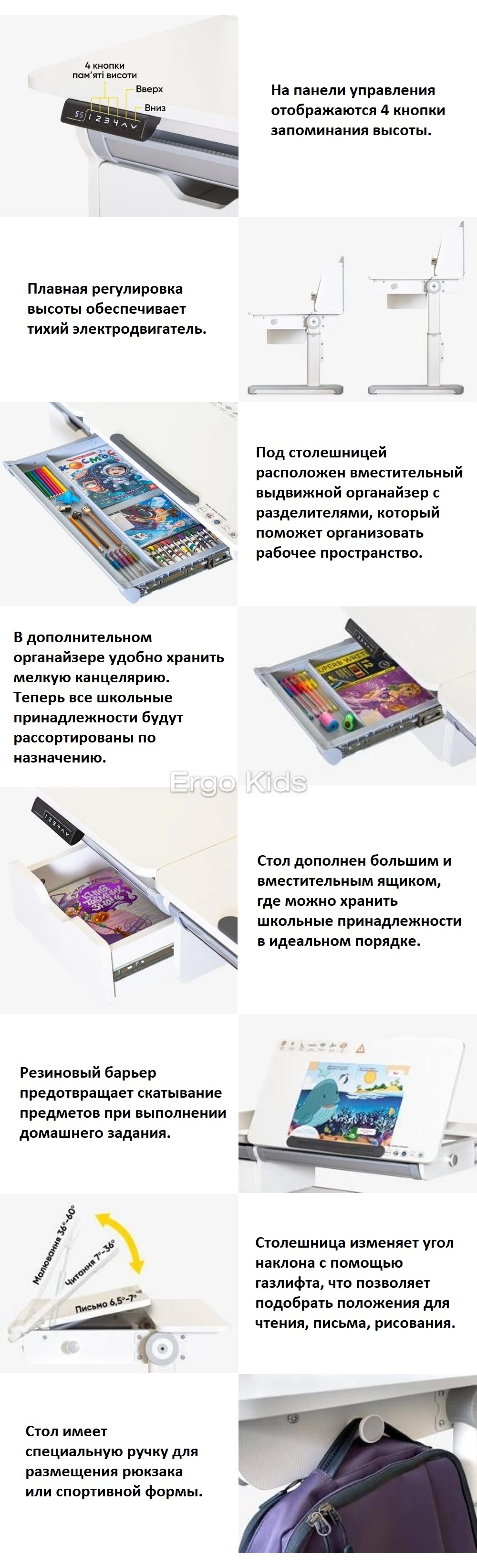 Детская парта Mealux с электрорегулировкой высоты Milton Electro BD-730 Lite